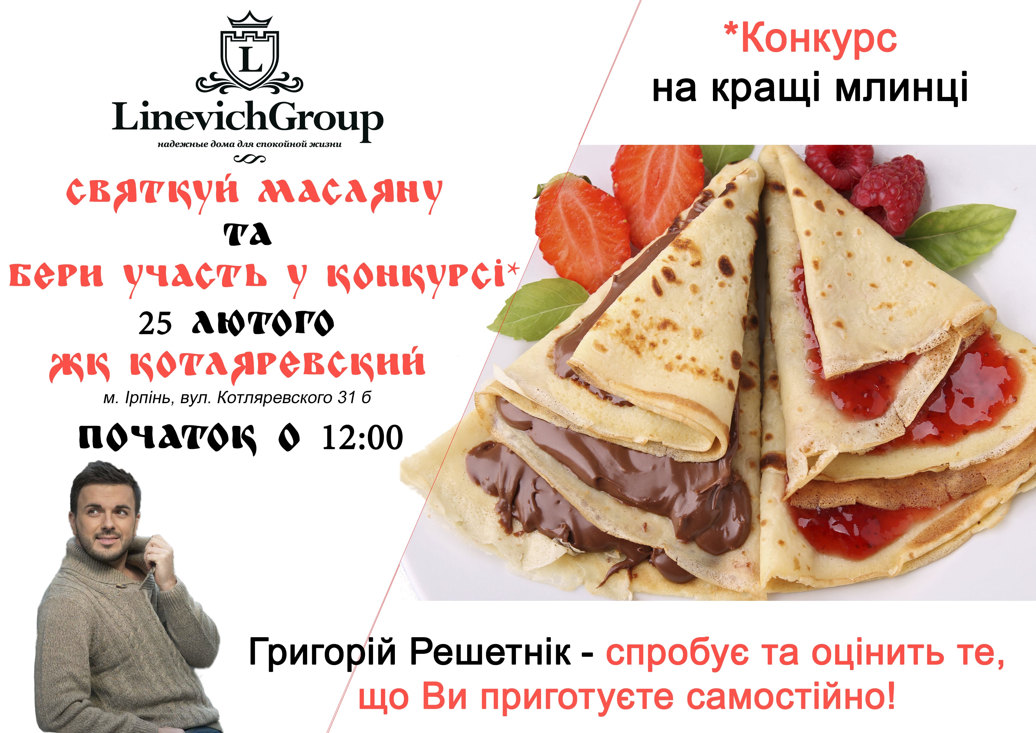 Уже 25 февраля ждём Вас в ЖК Котляревский на массовые гуляния, встречу весны и совместное поедание блинов на праздник "Масленица в LinevichGroup"!