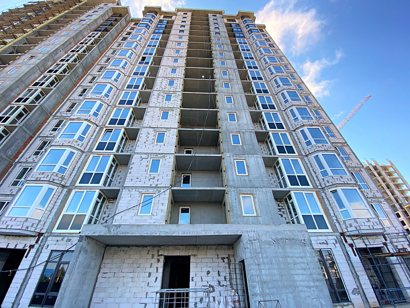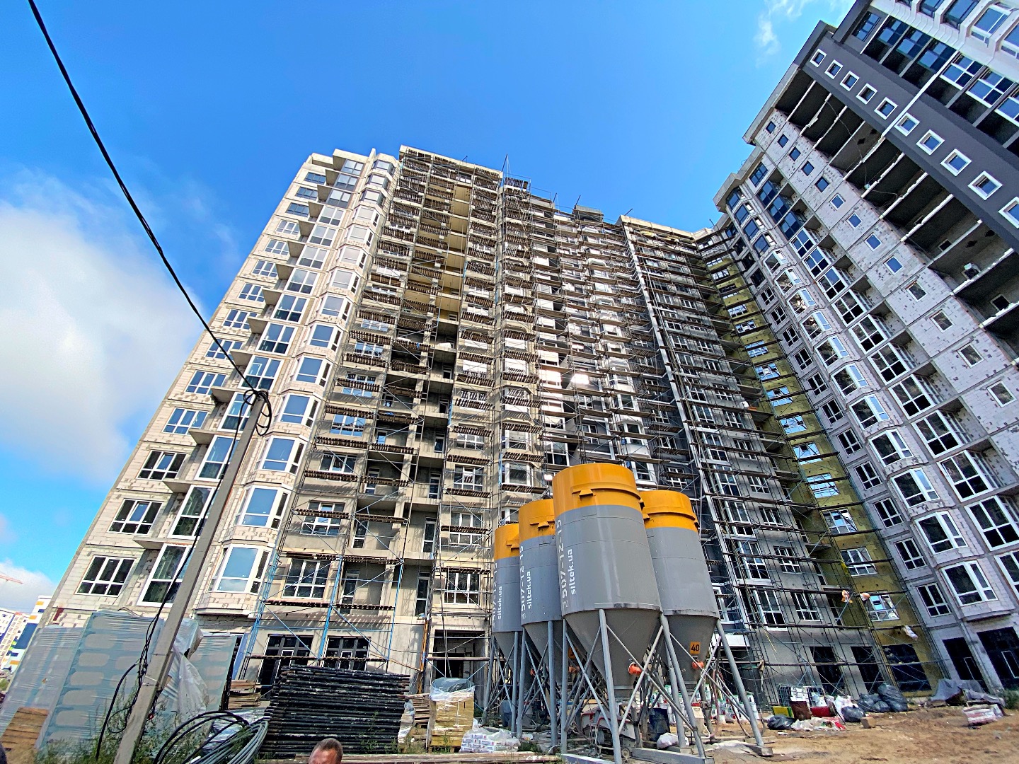 ❖ 3 секция - монолитные работы выполнены на 100%, кладочные работы стен и перегородок выполнены на 100%. Оконные проемы застеклены на 100%. Фасадные работы выполнены на 85%. Система отвода конденсата для кондиционеров выполнена на 100%. Отливы выполнены на 85%, разводка электричества выполнена с 2-го по 16-й этаж на 100%, штукатурка стен выполнена с 2-го по 16-й этаж на 100%. Разводка сантехники выполнена с 2-го по 16-й этаж на 100%. Стяжка брошена со 2-го этажа по шестнадцатый этаж на 85%.