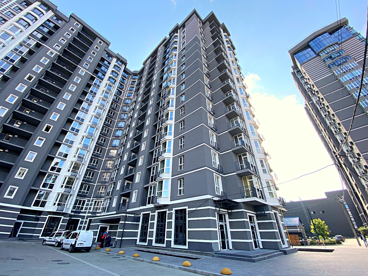 ❖ 4 секция - монолитные работы выполнены на 100%, кладочные работы стен и перегородок выполнены на 100%. Оконные проемы застеклены на 100%. Фасадные работы выполнены на 100%. Система отвода конденсата для кондиционеров выполнена на 100%. Отливы выполнены на 90%, разводка электричества выполнена на 100%. Штукатурка стен выполнена на 100%, разводка сантехники выполнена с 2-го по 16-й этаж на 100%. Стяжка брошена со 2-го по 16-й этаж на 100%. Кладовочные двери смонтированы на 100%, квартирные двери со 2-го по 16-й на 100%. Плитка смонтирована в МЗК со 2-го этажа по 16-й на 100%. Сбор лифта выполнен на 100%. Покраска стен МЗК выполнена на 100%. Входная группа выполнена на 80%.
